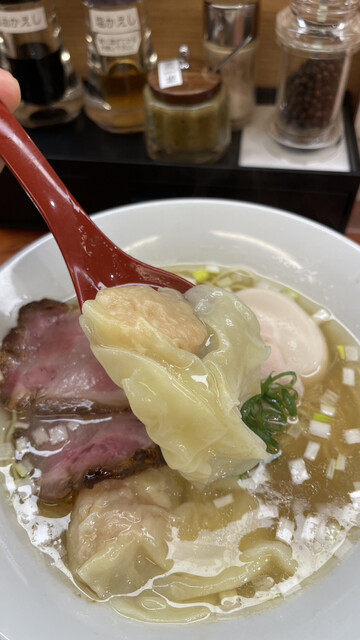 トッピングも秀逸!どれも味も良いが、ワンタンは生姜の、チャーシューは吊るし焼きのと香りの良さが舌だけでなく鼻も愉しませてくれる!