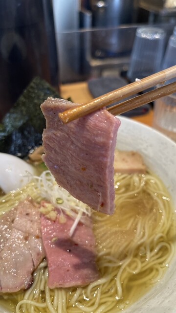 スープは鶏、帆立の旨味満載!出汁の美味さを塩がギュッとまとめ、さらにお酒がまろやかさな味わいに…沁みわたります…