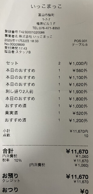 富山旅行の1日目の夕方17:00に1ヶ月前から予約の上で訪問。予約の電話がなかなか繋がらず苦労しましたが何とか予約出来ました!お昼は寿司を堪能して富山で2食目となります。