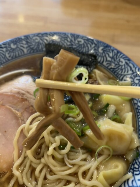チャーシューもいい。ワンタンもお肉たっぷりでツルツルとした食感と旨みで美味しい。メンマもいいバランス。