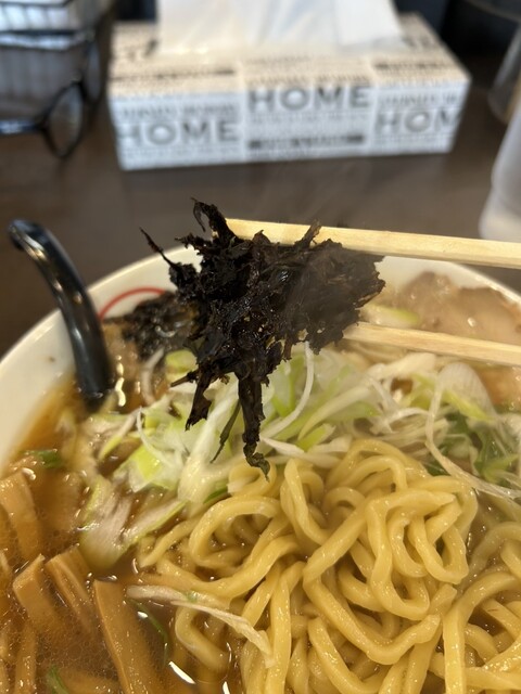 具は、柔らかく仕上がったチャーシュー、メンマ、岩のり、ネギ、水菜など種類豊富たがラー麺を邪魔してなくいい。