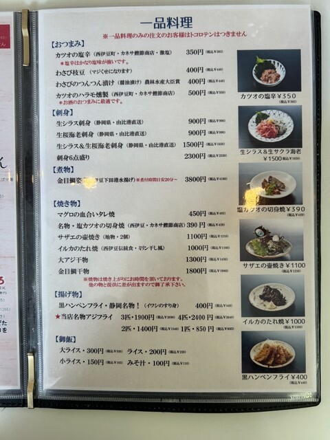メニュー。一品料理。