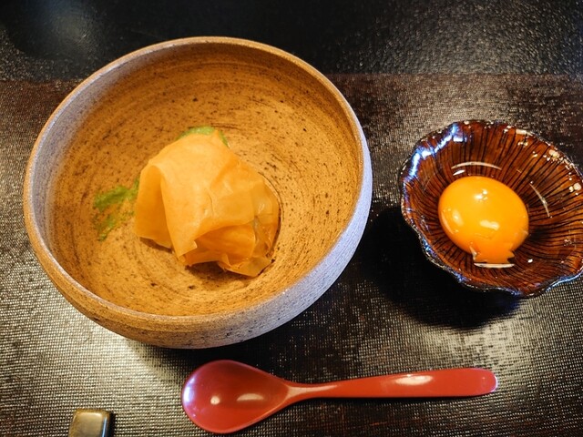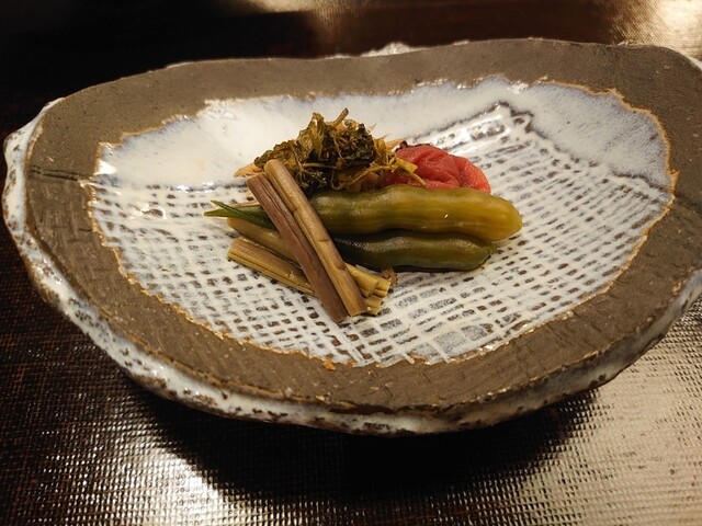そして熊鍋の出汁の雑炊と糠漬け。色のうすい卵はなんの秘密が隠されているのだろう。お料理の説明を丁寧にいただいていたがこの辺りで伺わずにただ、お料理に陶酔する感じになってしまった。