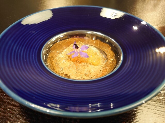 デザートはふな鮓の飯(いい)のアイスクリーム。チーズケーキのような濃厚さがあるが後味はスッキリしている。