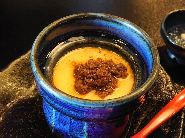 お造りは鯉を魚卵で和えたもの。山葵は大根と混ぜてあるのかソフトな印象。鯉というと泥臭いたいうイメージだがよい意味で裏切られた。