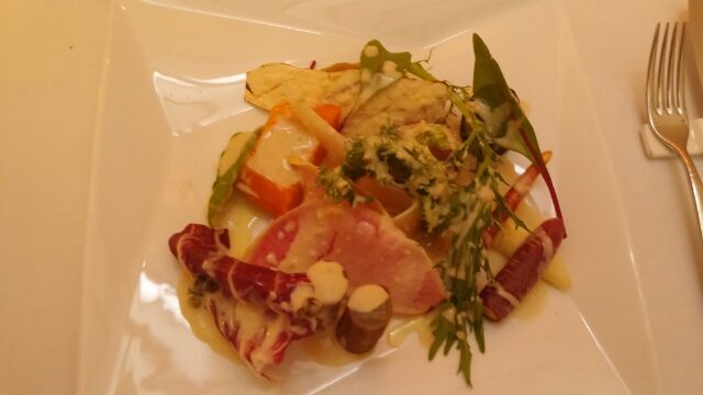 バーニャカウダの人気はすごくて、色んなお店で出していますよね。こちらのお店のはその中でも大変秀逸なものです。大皿に12種類の野菜がきれいに盛り付けられてきて、「上からかけて召し上がってください」とのことだったのでそれをかけるとたちまちバーニャカウダのそんなにきつくなくでもとっても美味しそうな匂いがたちこめました。