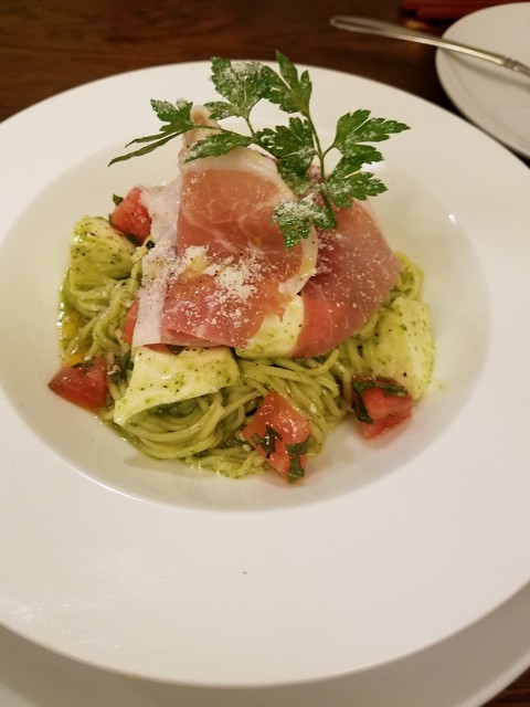 で、お味はというとバジルの香りがすごく爽やか!こう書くと割と普通な感じに聞こえますが、他で食べるのと比べるとバジルのえぐみというか、ちょっときついところありますよね?