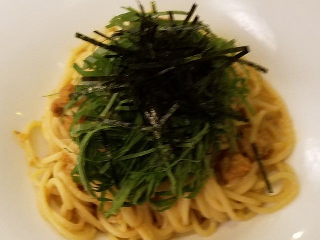 ここのスパゲッティはもっちり感のある茹で加減です。クリームソースがいいですね。軽くトマトの酸味がきいててパスタとソースだけでも十分美味しいです。(個人的に大好きなこともあり)牡蠣はいうまでもなく美味しいですね。熱が通っているだけの感じなので牡蠣の味とぷっくらした食感がそこなわれずいただけました。