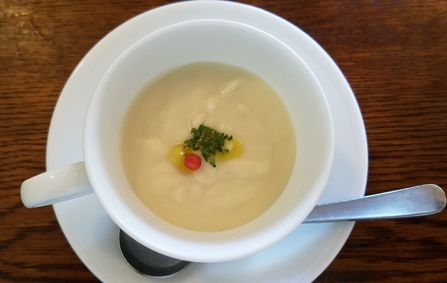 今日は「カリフラワー」のスープ。カリフラワーのスープは他のお店も含めて出会ったことないかも・・・。早速一口いただきます。