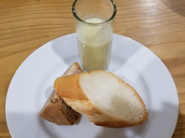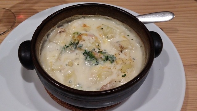 じゃがいもやカブがごろっと入っていて、ハフハフしながら食べるとクリームとチーズの味と香りが口中を支配します。