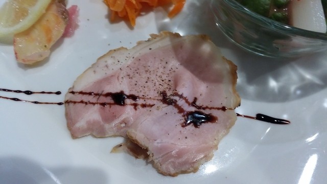 ヴァンルージュソースは、アプリコット?を香りづけに使ったと感じました。ほんのりの甘さと赤ワインを使ったソースが抜群です。