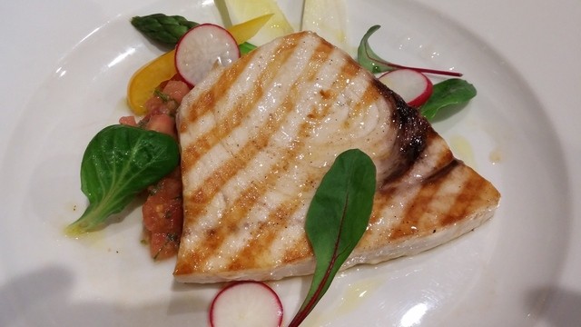 大きなカジキのグリルには、しっかりと焼き目が入ってとてもおいしそうです。