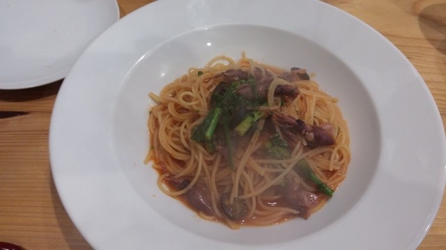 定番そうなトマトソースにホタルイカと菜の花がトッピングされてとても美味しい一皿です。