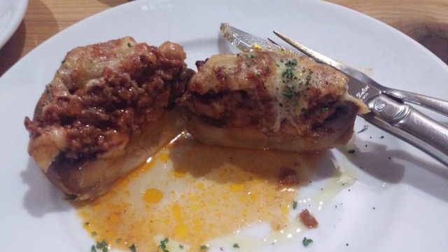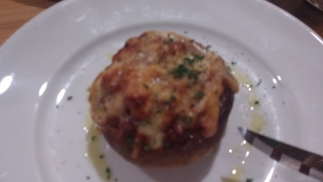 チリビーンズを詰めた・特大マッシュルームのグラタン:
