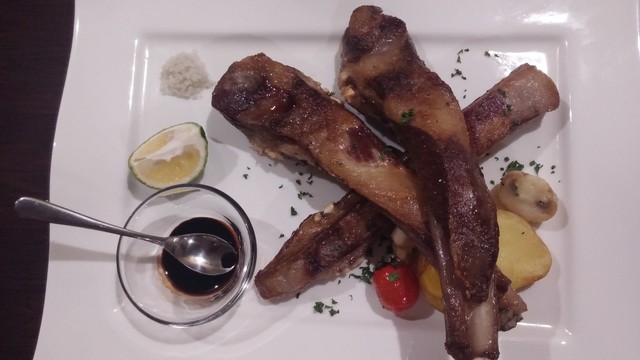 お店の人曰くですが、鹿のほとんど骨になったところをグリルして、塩・かぼす・フルーツを絡めたヴァンルージュソースでいただきます。