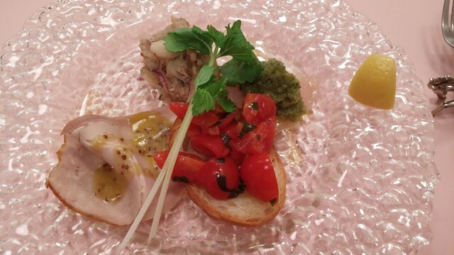 前菜は4品定番のようですね。しかもミニトマトのブルスケッタは標準装備のようです。