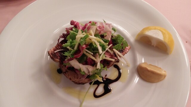 トスカーニャ地方では最高のおもてなしなんだとか。真鱈グリルの前では少々霞んでしまうものの焼き加減といい香りといい文句のつけようがありません。