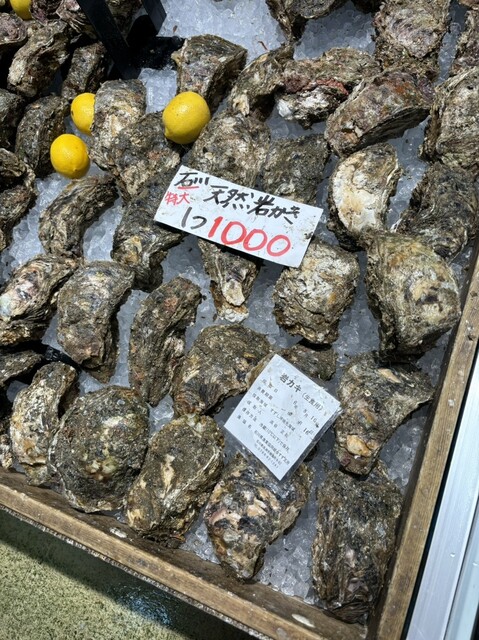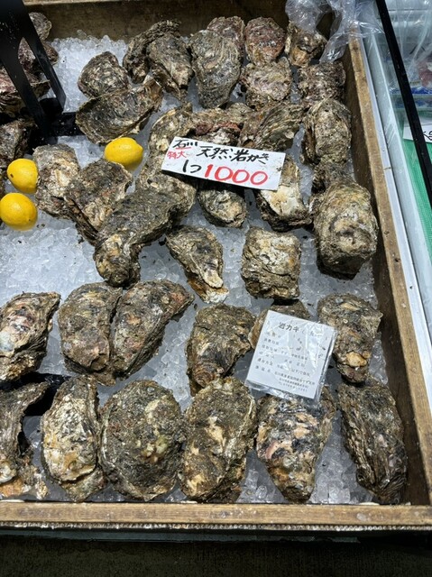 大きさや種類により金額は違いますが、天然の岩牡蠣をその場ですぐに食べる事が出来ます。