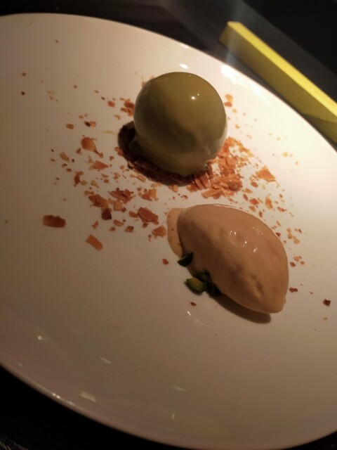 とにかく一口目からこれは脳内がヤバイヤバイと、いろんな信号とか出していた。濃くてナッツ感しっかりのピスタチオチョコソースが、しっとりとしたピスタチオガナッシュを包み込んでいて、どこまでも隙のない、フルスロットルなピスタチオスイーツ‥。