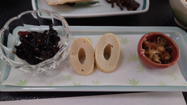 温泉玉子は彩り豊かな野菜あんがかかっており、優しい味わい。湯豆富は鳥取産の大豆を100%使用していて、大豆本来の旨味が感じられました。小鉢にはするめいか粕漬けや豆富竹輪、きくらげの佃煮など、郷土らしいおかずが並び、どれもご飯の良き友。