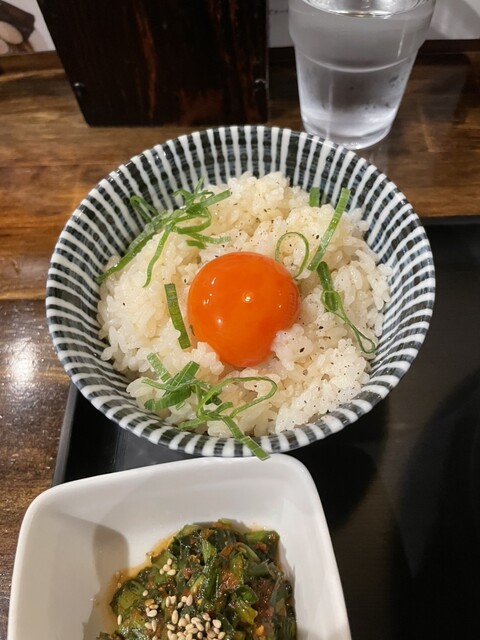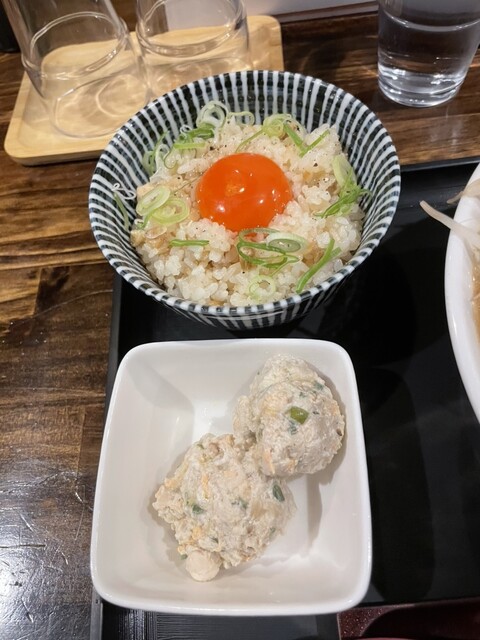 スープは豚と最後に魚介の旨みに醤油の酸味!旨みたっぷりのスープ!極太の平打ち麺はコシがあり小麦の甘み!!厚切りチャーシューは柔らかくて味がしっかり!たっぷりのシャキッと野菜!アブラが甘くて濃いので麺、野菜につけて!すりおろしニンニクのパンチ!鶏つくねは鶏の旨みとゆずの後味でさわやか!月見鶏めしはあっさりとお出汁の効いたご飯に卵黄を絡めて!こちらもアブラと食べると相性抜群!めっちゃおいしかったです!ごちそうさまでした!