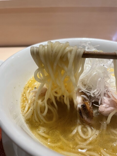 モチモチの平打ち麺との相性抜群!炭火で炙られたブリ玉を溶かすと炭の香りに鰤の旨みがさらにアップしてピリッとした辛さもプラス!