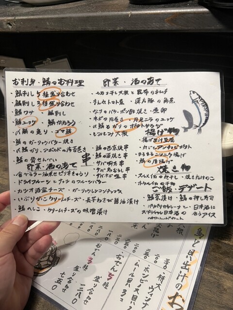 お刺身もどれも美味しく、ポテサラは海苔に巻いて食べるのが最高で、串焼きも油が乗ってて完璧で、唐揚げもジューシーでお酒が進みました