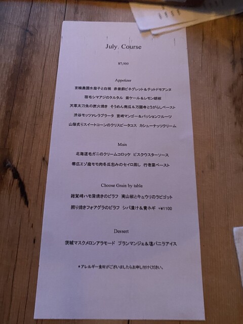 今回もコースのお品書きを見た時に、どんな料理が
