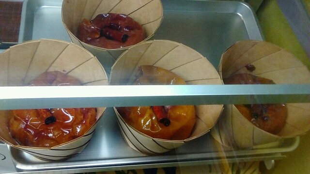 到着直後は陳列されてなかった焼き林檎が陳列されたのでヽ(・_[[◎]]~カシャ☆ 包まれてる容器もシンプルなのに手が込んでいて素敵☆