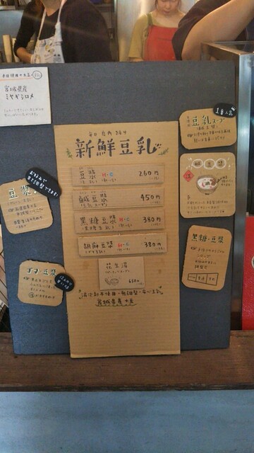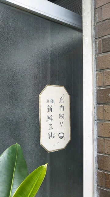 入口の扉の裏には【店内絞り✩新鮮豆乳】の貼紙も