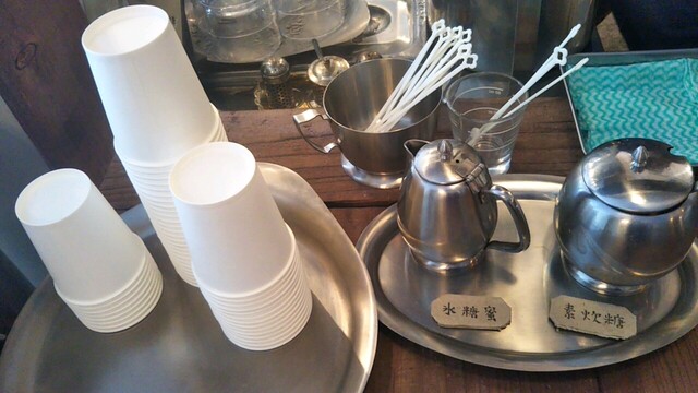 豆乳スープを堪能した後セルフで下膳カウンターへ その時気づいたシロップたち