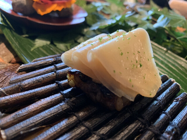 蒸し上げた後、バラとかんずりのオイルを塗って炭火焼きにしてるそうです