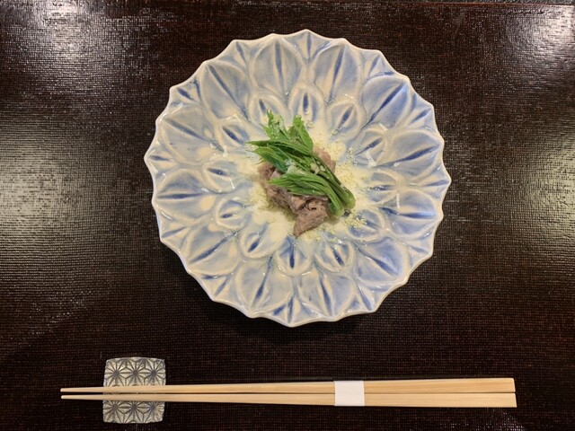 この時期に頂けるお目当ての花山椒はお皿にたっぷりと贅沢に盛られ食べる前からわくわくが止まらない…