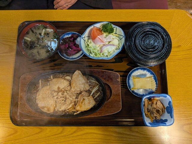とんかつ定食、生姜焼き定食を注文! 生姜焼きは、熱々の鉄板で