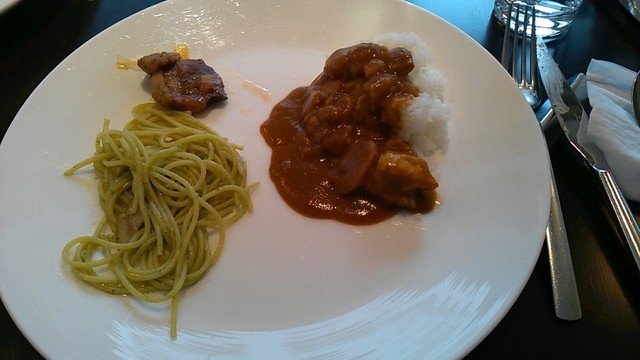 ほうれん草のパスタ、カレー