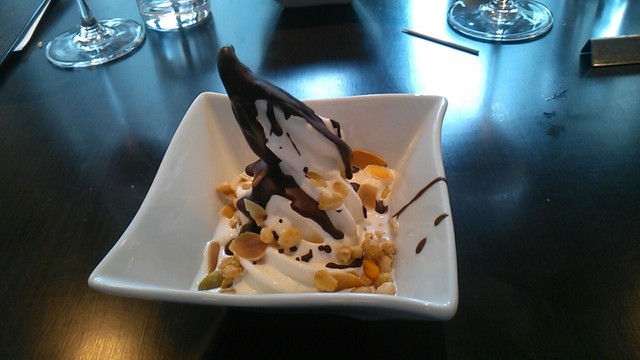 ソフトクリームとチョコ、ナッツ