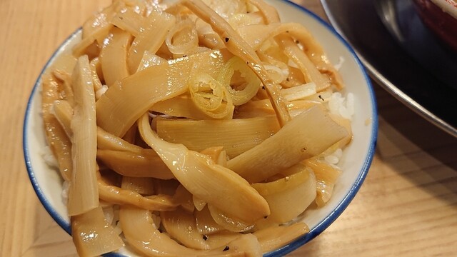 スープを少し残してメンマ飯に取りかかります。スープと白飯、メンマが煮干し味と相性がいいです。