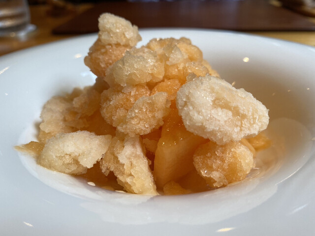 Aコースの鶏肉の甘酢あんかけは肉が柔らかく味がしっかりしていて、ソースは口に入れてから三重奏のように味が変わっていきます。