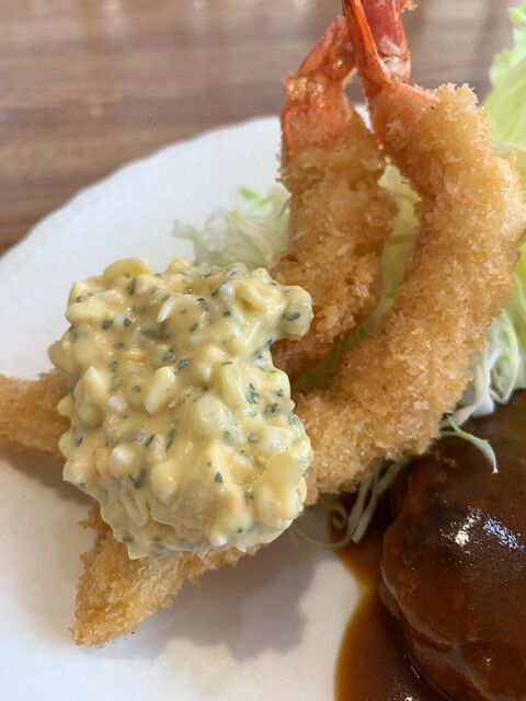 海老フライにはタルタルソースたっぷり。