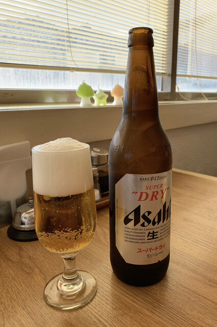 計画はランチライス抜きにアサヒ君の大瓶。