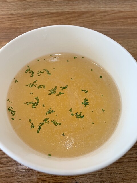 最初にコンソメスープが出されて、優しい味。