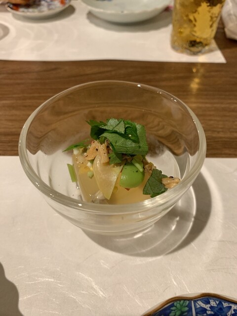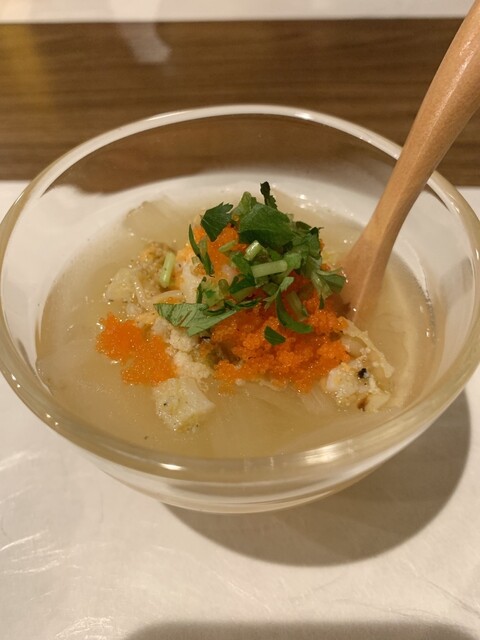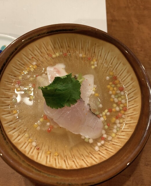 ◯突出しは、鰯の燻製とそうめんのジュレ。