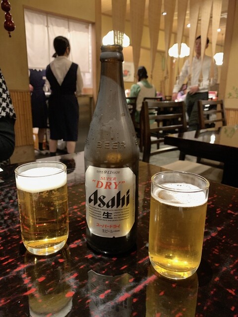 骨せんべい、柚子明太子、アサヒ君でかんぱ〜い。