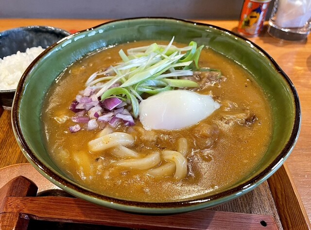 *かすカレーうどん(ちょい飯・温玉つき)(¥1,000)