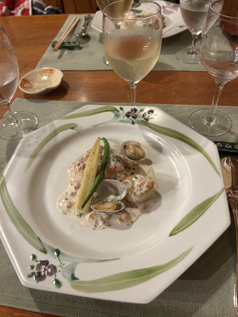 住宅街にひっそりと佇む物語に出てきそうな外観に、アンティークな木造家具や古伊万里をはじめとした食器、一流レストランの接客、料理が来る前から期待大でした
