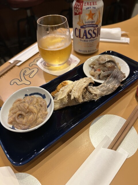 三種の珍味を注文。塩辛ととばたらにしんの切り込み。どれも美味しいけどにしんが特に絶品!