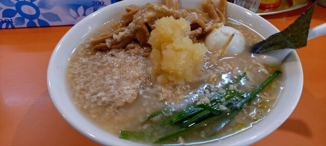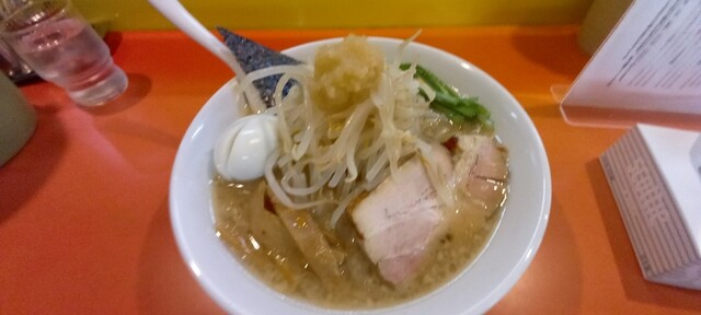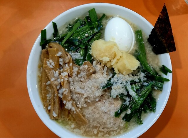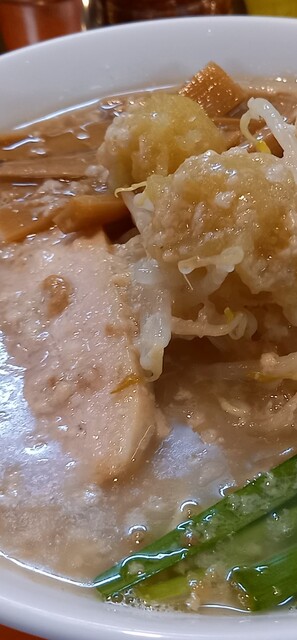 • 背脂粉雪ちゃちゃと舞う乳化スープに背脂ちょっと多め