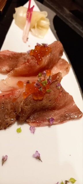 サーロインの焼きしゃぶ卵のエスブーマトリフ添えとビーフカレーは絶品