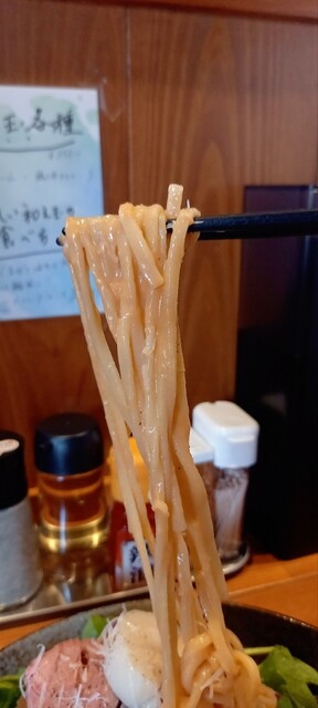 中華そばで使用されているピロピロ麺に比べて、モチモチ感があり、これもまたおいしい!