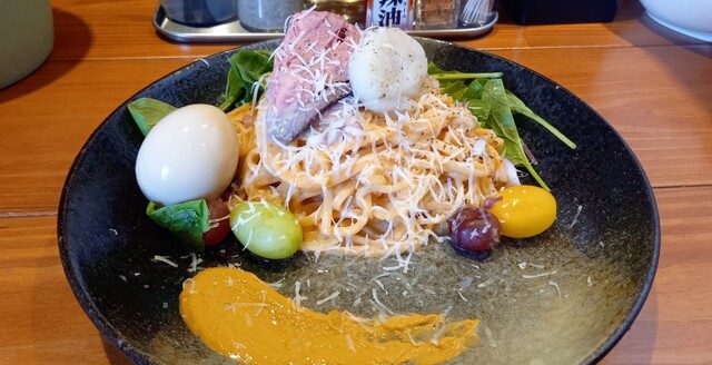 限定 冷製トマトクリーム和え麺 ウニオレンジソース添え 1500円 平打ちストレート麺